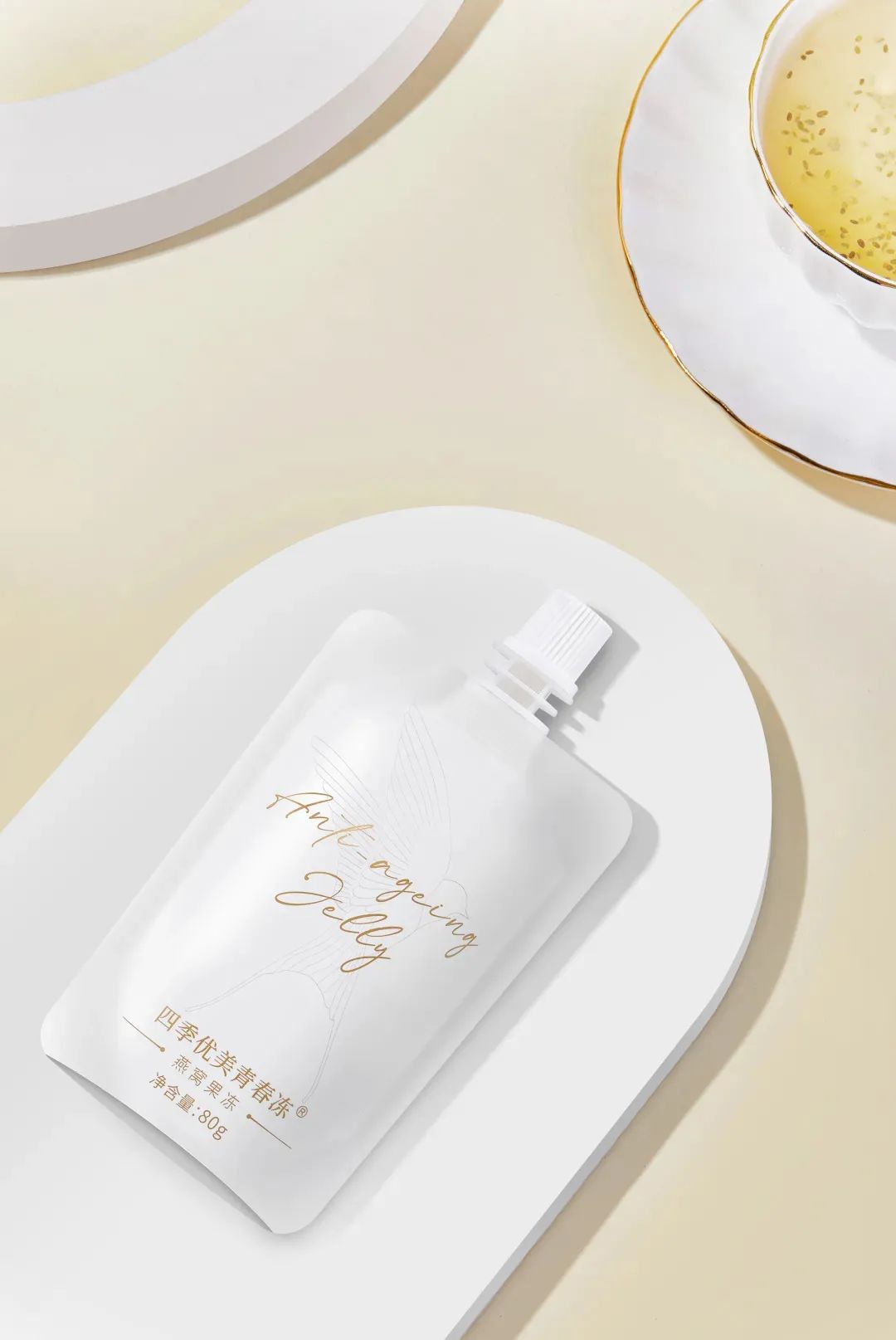 為了保證品質的純粹,燕窩全程使用高標準的純凈水泡發,最大限度阻隔外部雜質的混入;通過121℃精準控溫,在瞬時滅菌的同時激活精華并鎖住活性;四季優美青春凍成品選用的四層復合膜袋,最內層和最外層均為日本進口材料,其中最外層為高阻隔材料,所有材質達到食品級安全標準,在高溫滅菌的同時實現無菌密封,最大程度保留原料的活性,并能在12個月的最佳食用期內保證品質的穩定。