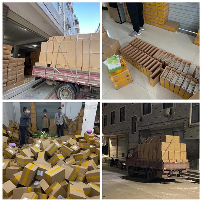 11月9日,在接到四季優(yōu)美打假維權(quán)部門報警后,安徽省合肥市公安局蜀山區(qū)分局一舉查封了位于浙江省東陽市東義路某小區(qū)的假冒“隨便果”倉庫,現(xiàn)場查獲尚未來得及發(fā)出的假貨8150盒,并對全部假冒產(chǎn)品予以扣押。與此同時,另一路公安干警奔赴湖南省婁底市雙峰縣,迅速抓獲了藏匿于某小區(qū)的售假網(wǎng)店運營人員,依法查封20余家售假網(wǎng)店,并計劃進一步追查假貨源頭,絕不讓任何一個涉案者漏網(wǎng)。